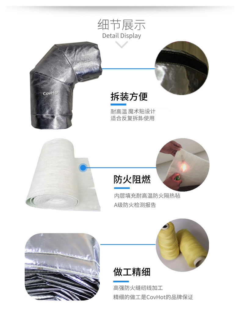 在實際的蒸汽管道保溫中,當對某些設備、閥門、法蘭等管件進行維修、更換時,傳統的保溫方式并不適合安裝在需要定期檢查、維修的閥門上,但是可拆卸保溫套卻可以很好的解決這一問題。由于不可拆卸式的絕熱方式,要想對設備進行維修、更換,只能損壞原有的隔熱機構,重新購買安裝保溫設備。可拆卸式保溫套是一種專門使用于蒸汽管道保溫的一種好方法,下面我們來了解一下它的性能及特點。