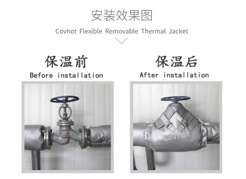3. 維護(hù)的便利性,如果閥門需要維修或者拆裝,普通巖棉保溫拆除后無法二次利用,柔性可拆卸閥門保溫套可以循環(huán)使用。