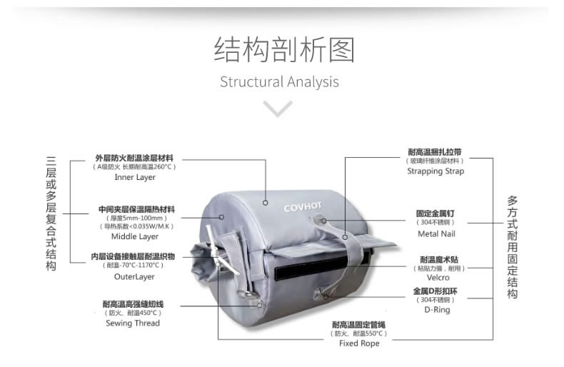 可拆卸截止閥保溫套可以滿足不同領(lǐng)域的柔性保溫應(yīng)用需求。可以很方便進(jìn)行拆裝操作,可重復(fù)多次使用,以最大化其經(jīng)濟(jì)效益,降低熱損耗。對于一些表面形狀特殊、復(fù)雜的設(shè)備隔熱(防火),柔性隔熱防火)套也能顯示其獨(dú)特的優(yōu)勢。經(jīng)測試計(jì)算,采用本產(chǎn)品后,通常可節(jié)約熱能達(dá)90%以上。有些用戶短投資回收期僅為6個(gè)月左右。